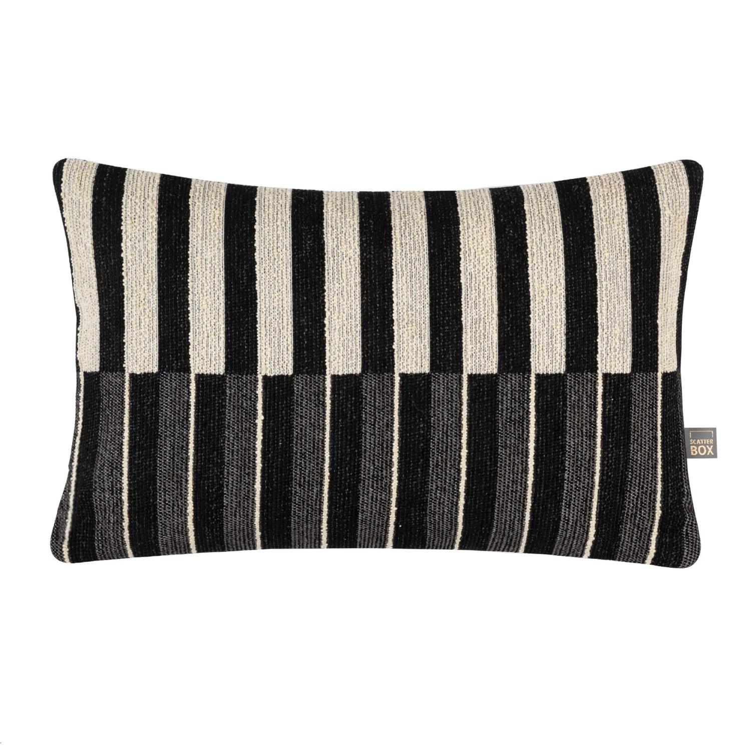 Introduce stunning texture and intricate details with this Everett Black Rectangular Cushion by Scatter Box. Crafted from various materials, this stylish cushion features a captivating illustrated design in chic black and cream tones and double sided knife edges. Available in two colours, this sophisticated cushion has a feather pad filling with a zip closure, it will easily create a statement in any room whilst exuding calmness and luxury to any neutral or contemporary interior setting.
