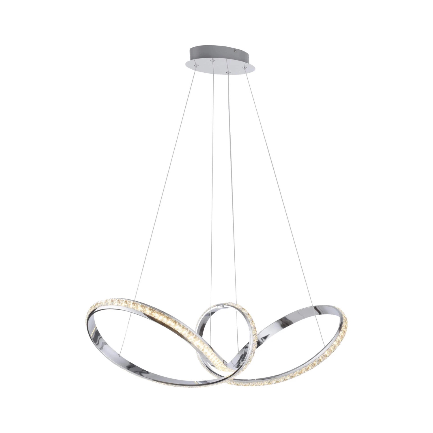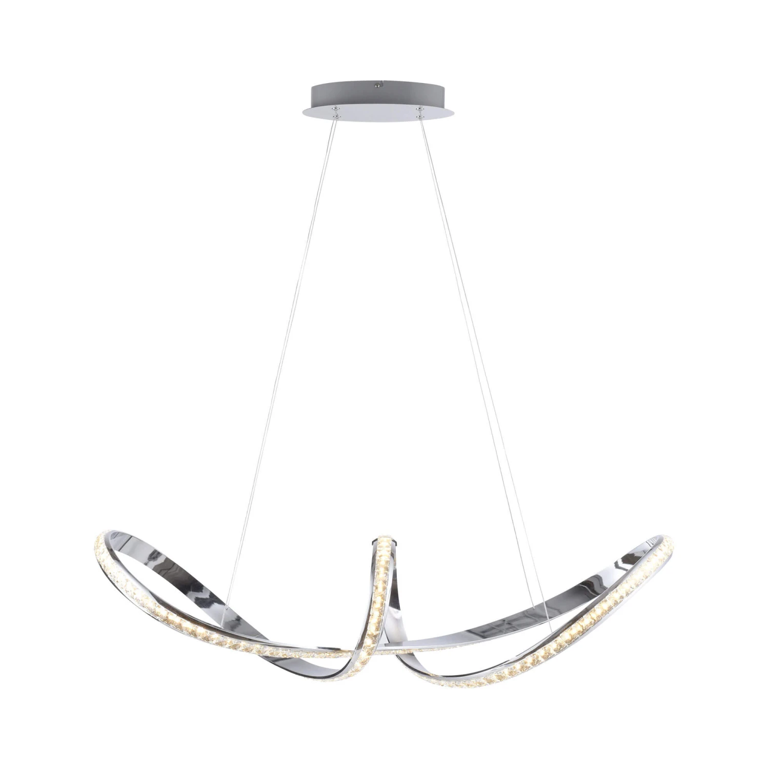 Add a exquisite and dazzling touch to your living space with this Scouts Chrome Crystal LED Pendant Light. Illuminated by energy-efficient warm white LED light sources, this eye-catching pendant light features a distinctive shiny iron chrome curved shaped shade with a acrylic crystal cover and a oval base, creating a pleasantly warm beautiful play of light when illuminated. Operated by a light switch, this impressive pendant light is equipped with a new stepless dimmer technology “simply dim” allowing smooth dimming for you to adjust the light intensity using any existing light switch, and a memory function saving your last setting. Glamourous and modern in design, this pendant light will effortlessly become the focal point of any room and is able to complement any modern décor.
