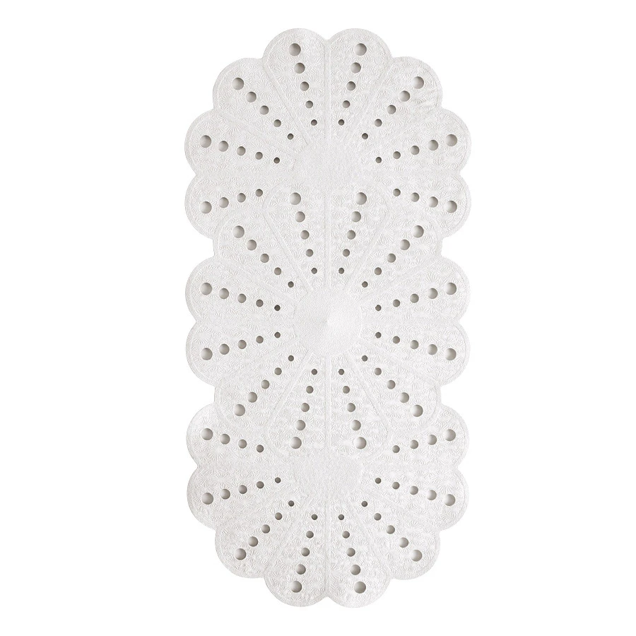 Add style to your bathroom with this petal design bath mat from Showerdrape. This elongated petal design bath mat would be a useful and stylish addition to your bathroom. With a classic white colour and suckers on the bottom for stability, this anti-slip bath mat features large holes throughout for faster draining of your bath water, making it a useful addition to your bathroom.