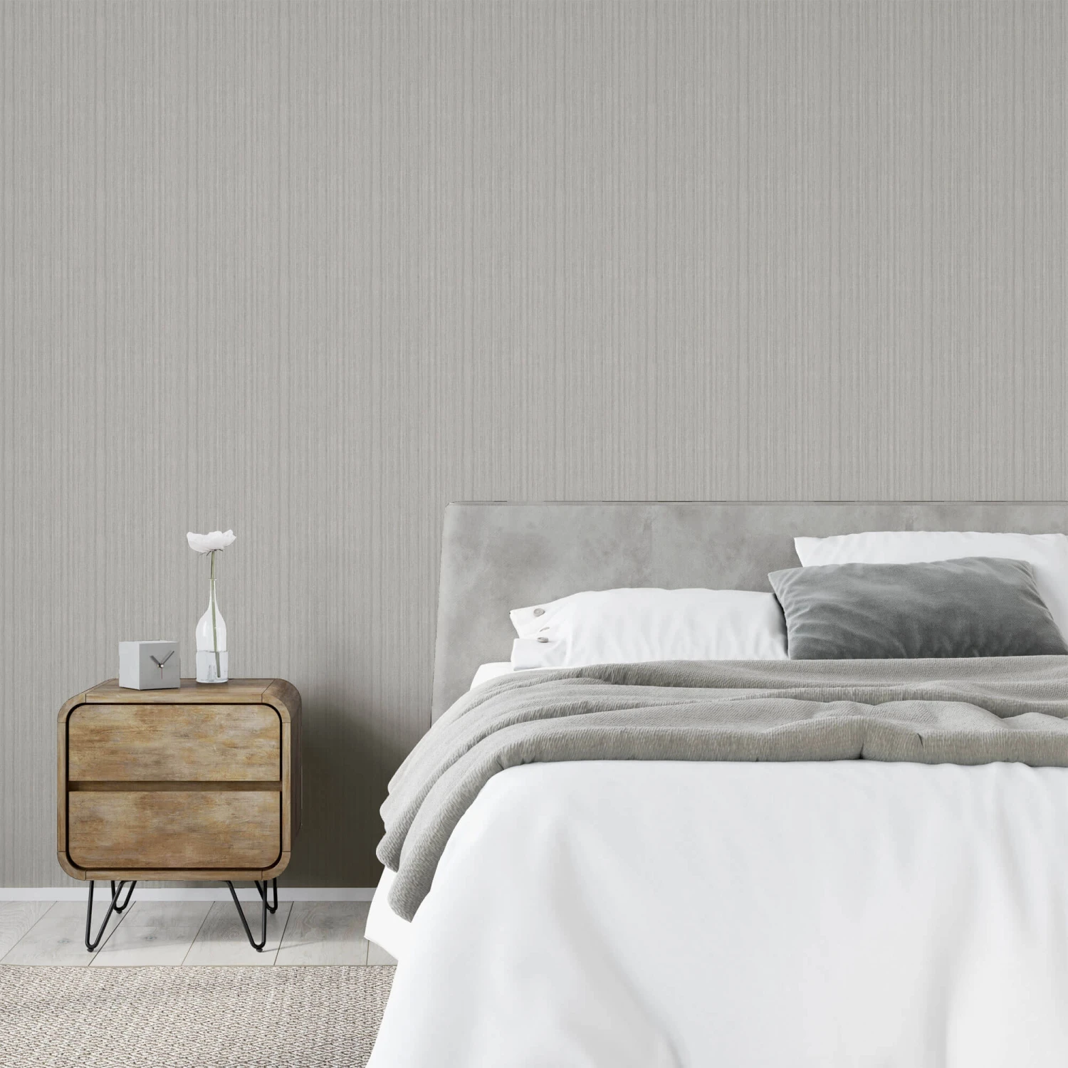 The Silk Cascade Silver Wallpaper from Arthouse brings contemporary stye and minimalist design to any living space. Featuring a subtle, vertical brushed effect reminiscent of the movement of flowing silk in an elegant silver colour on a heavyweight vinyl, this sophisticated wallpaper is perfect for adding sleek and stylish touch to your walls. The cool and metallic tone creates a graceful yet refined statement to any room, able to adapt beautifully to various interior settings, from rustic to modern.