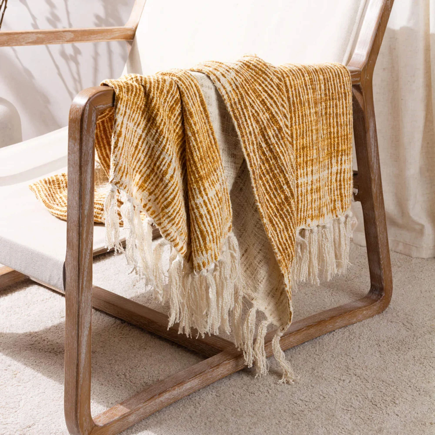 Add a relaxed and contemporary touch to your living space with this Sono Ink Cumin Throw. Crafted from 70% cotton and 30% polyester, this woven throw features a cumin abstract ink printed design with double-sided tasselled edge trims, complete with a plain reverse, it is soft and comfortable to snuggle up with. Available in two colours, this stylish throw is perfect for adding subtle colour and texture to any interior.