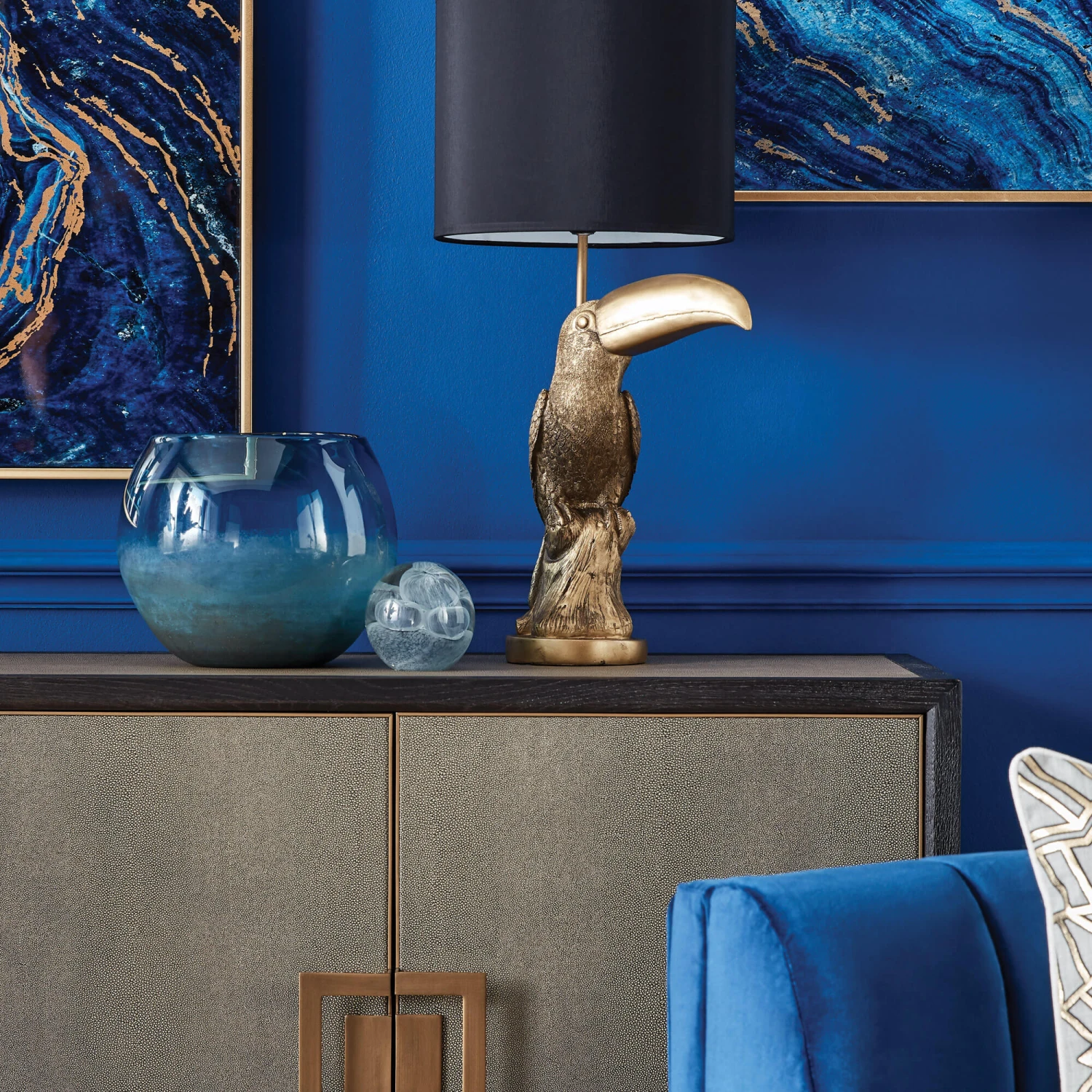 Designed for those who love to entertain, the Stellar 4 Door Grey Shagreen Sideboard is perfect for bringing the indulgent, free spirit of the roaring 20s to your home. With its decadent matte gold trims and ferrules, statement geometric handles and grey shagreen look fabric that graces the sides and doors, the Stellar boasts a classic, art deco inspired design.