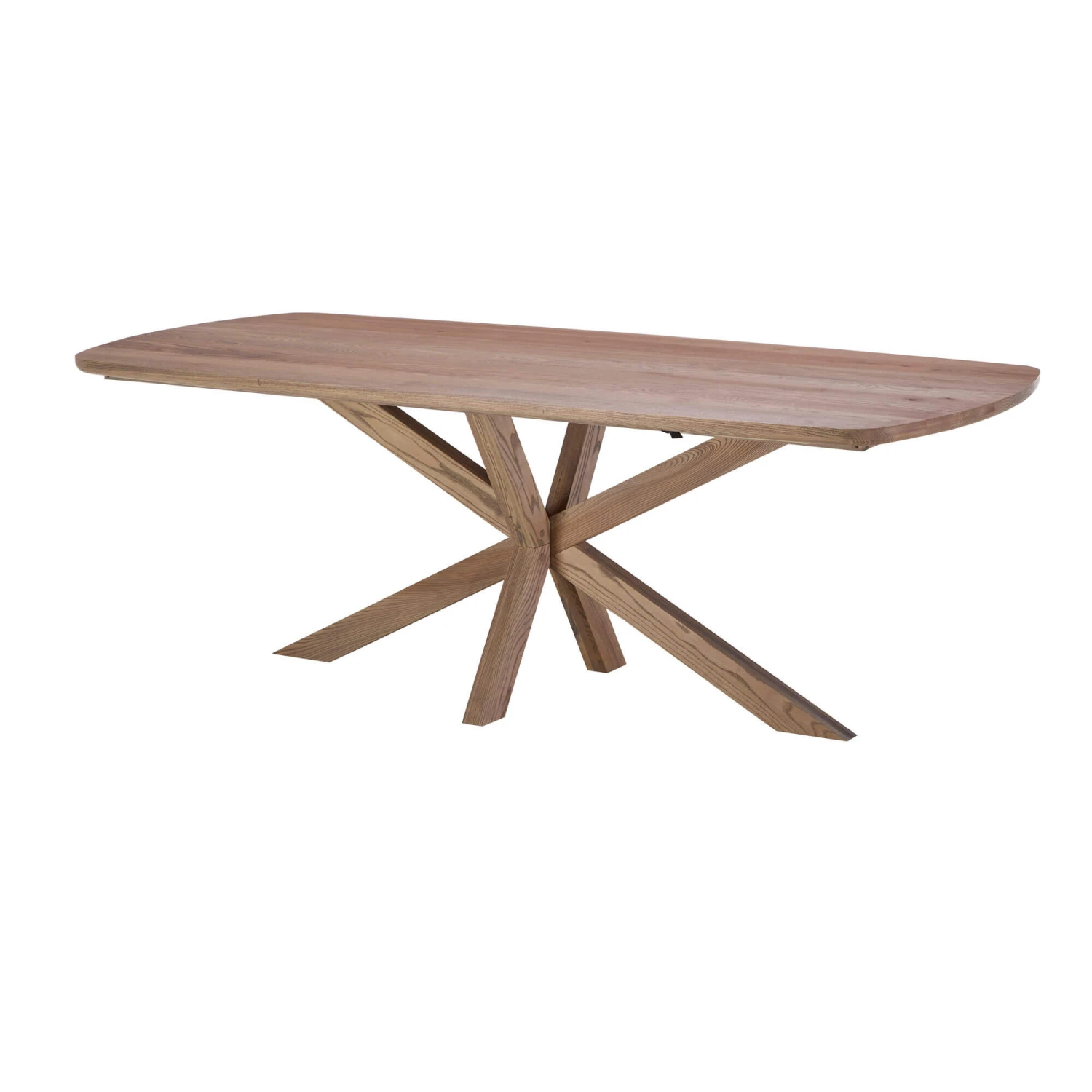 The Stephanie 220cm Solid Brushed Ash Dining Table features a stunning contemporary design that is versatile and sits wonderfully alongside most existing furniture and blends in with most room styles. This table features a solid ash construction with a brushed and oiled finish, highlighting the wood’s natural beauty. The table’s most striking feature is its intersecting starburst shaped legs, creating a captivating visual contrast with the rectangular top.