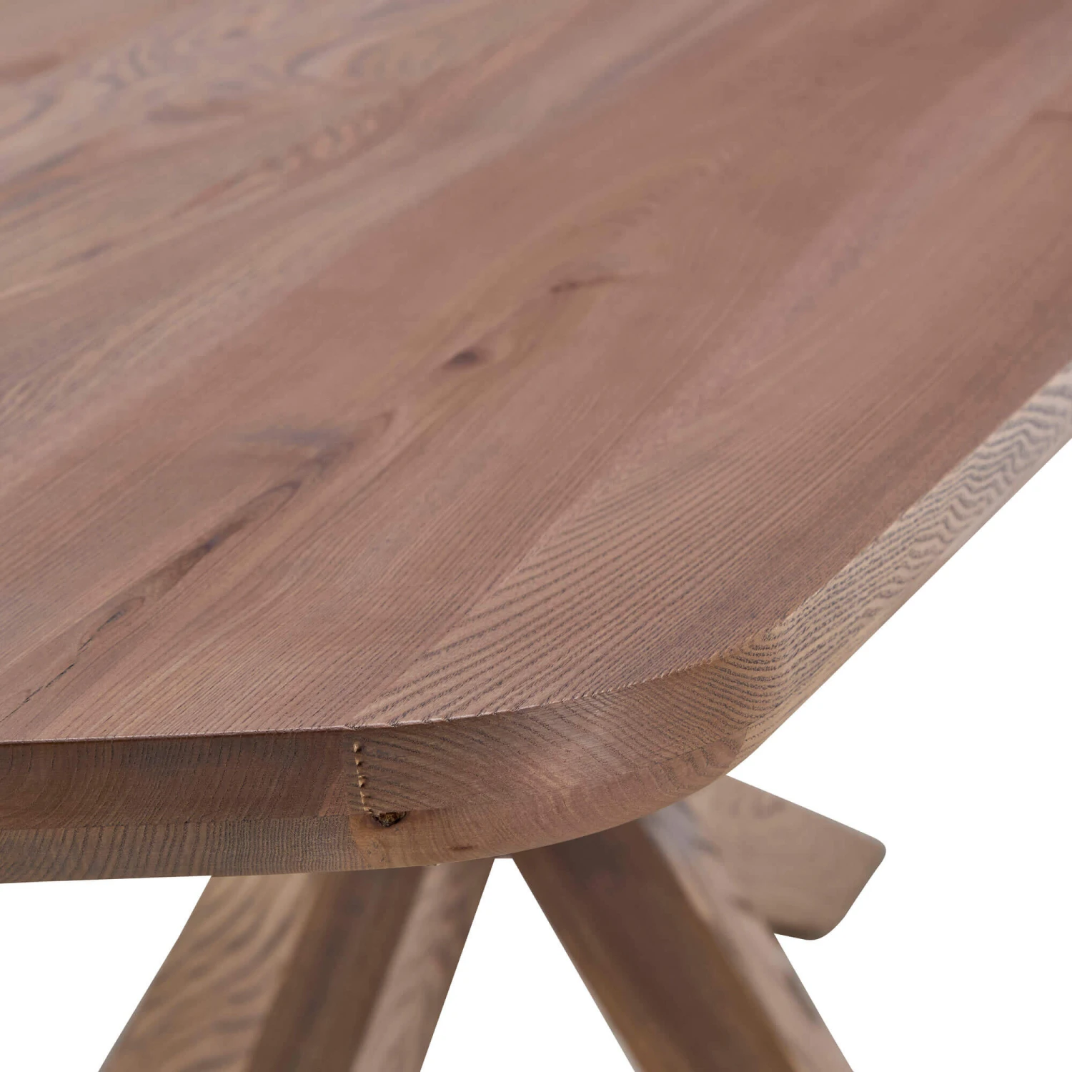 The Stephanie dining table boasts a thoughtful design with rounded edges, while the planks running lengthways add a sense of depth and dimension. The subtle changes and variants of brown shades in the ash wood create a charming look.