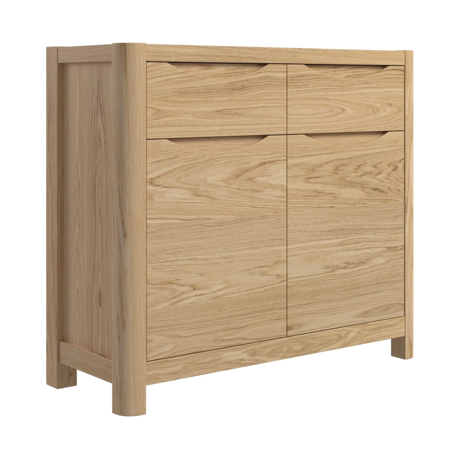 The Stockholm 2 Door Sideboard is the perfect size for apartment living or small lounges or dining areas where space is limited, with its compact, space-saving design. Its 2 drawers are deep and aptly sized to offer a convenient space for small item storage and the 2 door cupboard provides adequate space for your finest dinnerware and napery for entertaining. Accompanied with its elliptical shaped, recessed handles and smooth, soft close runners, which ensure that the drawers open and close with ease, this sideboard is a practical piece, made with small living spaces in mind.