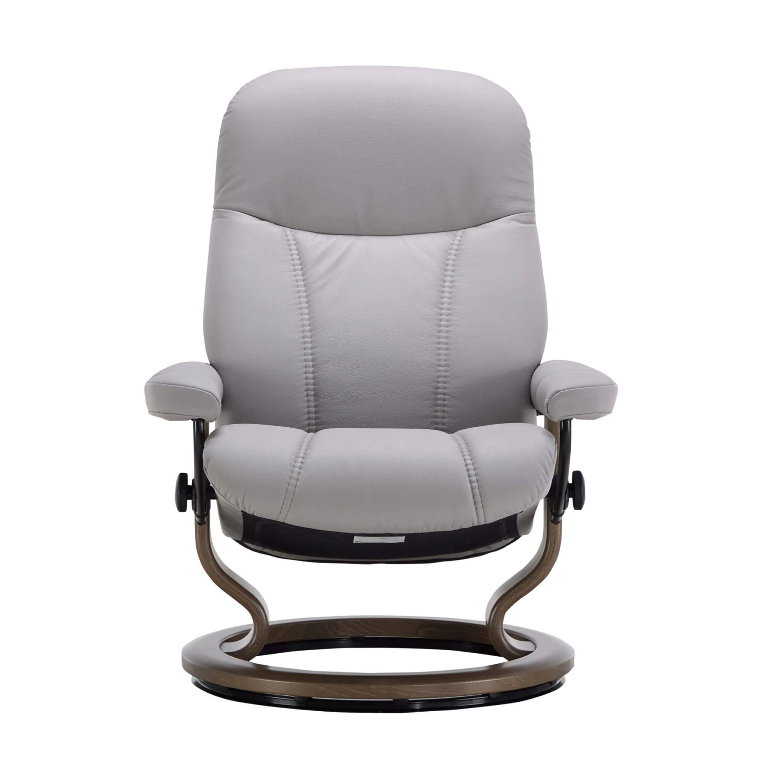 Contemporary and timeless, this chair comes in Batick platinum grey leather with a classic smoked oak stain base. The chair also comes complete with a free-standing footstool, allowing you to position wherever you find most comfortable, making it perfect for all leg lengths.