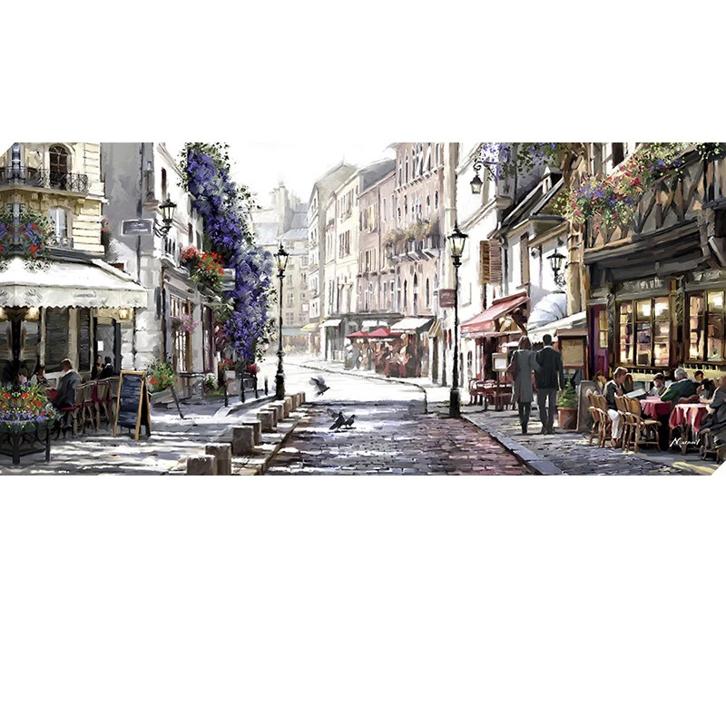 This vibrant depiction of sunlit cafes by Macneiln would make a bold statement to any room