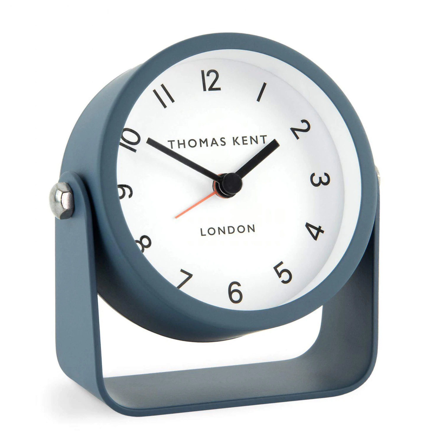 This contemporary alarm clock from Thomas Kent is presented in a minimalistic Nordic style. The clock face has a simplistic numerical black and white design, brought together with a striking midnight blue metal frame. The adjustable stand allows for clock face rotation as desired. The perfect clock for your bedside table or chest of drawers.