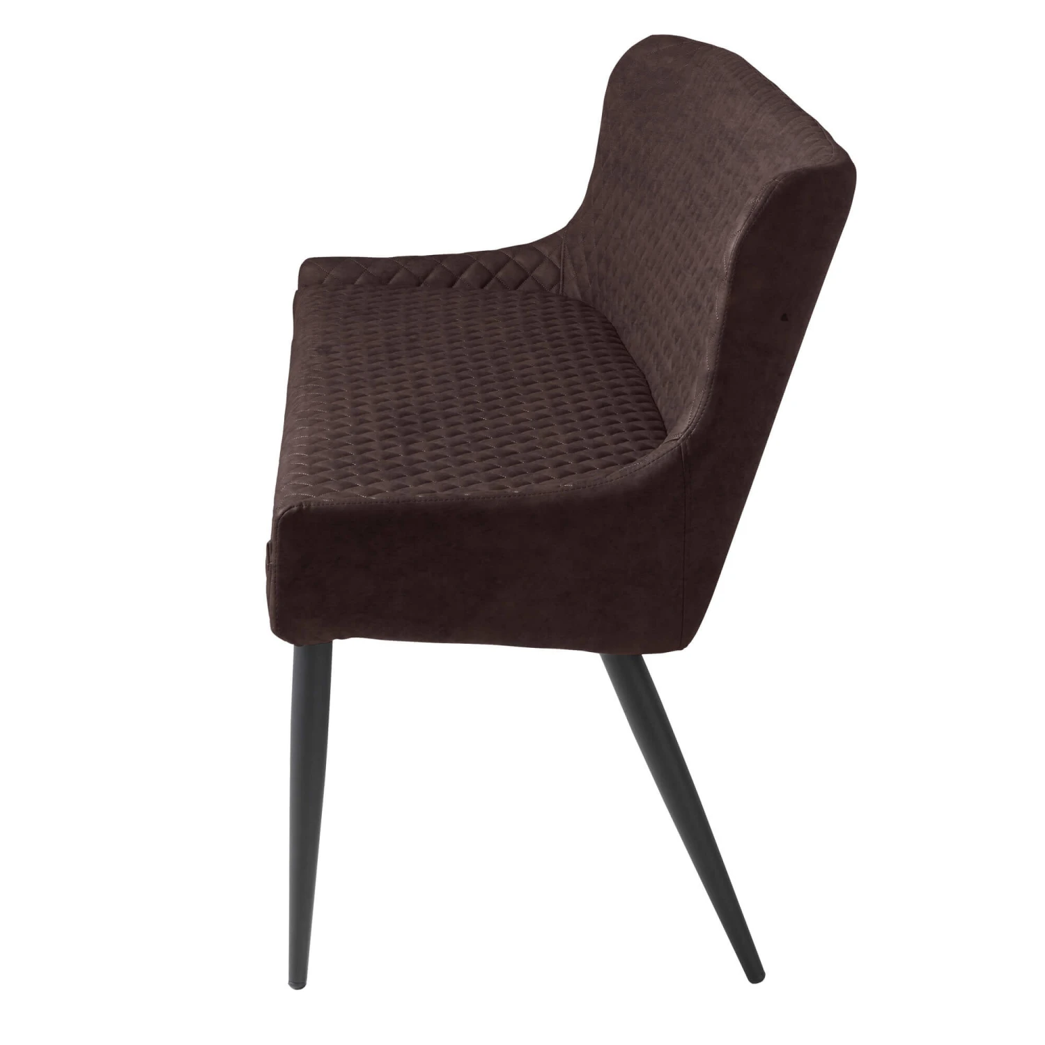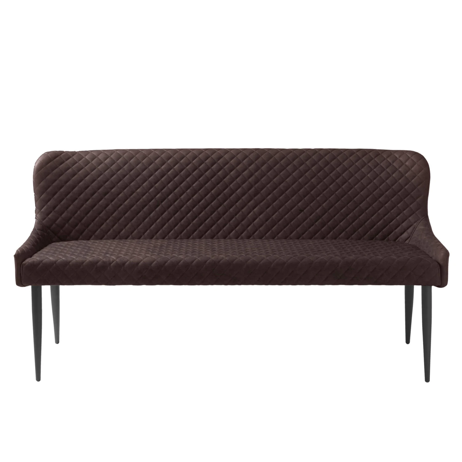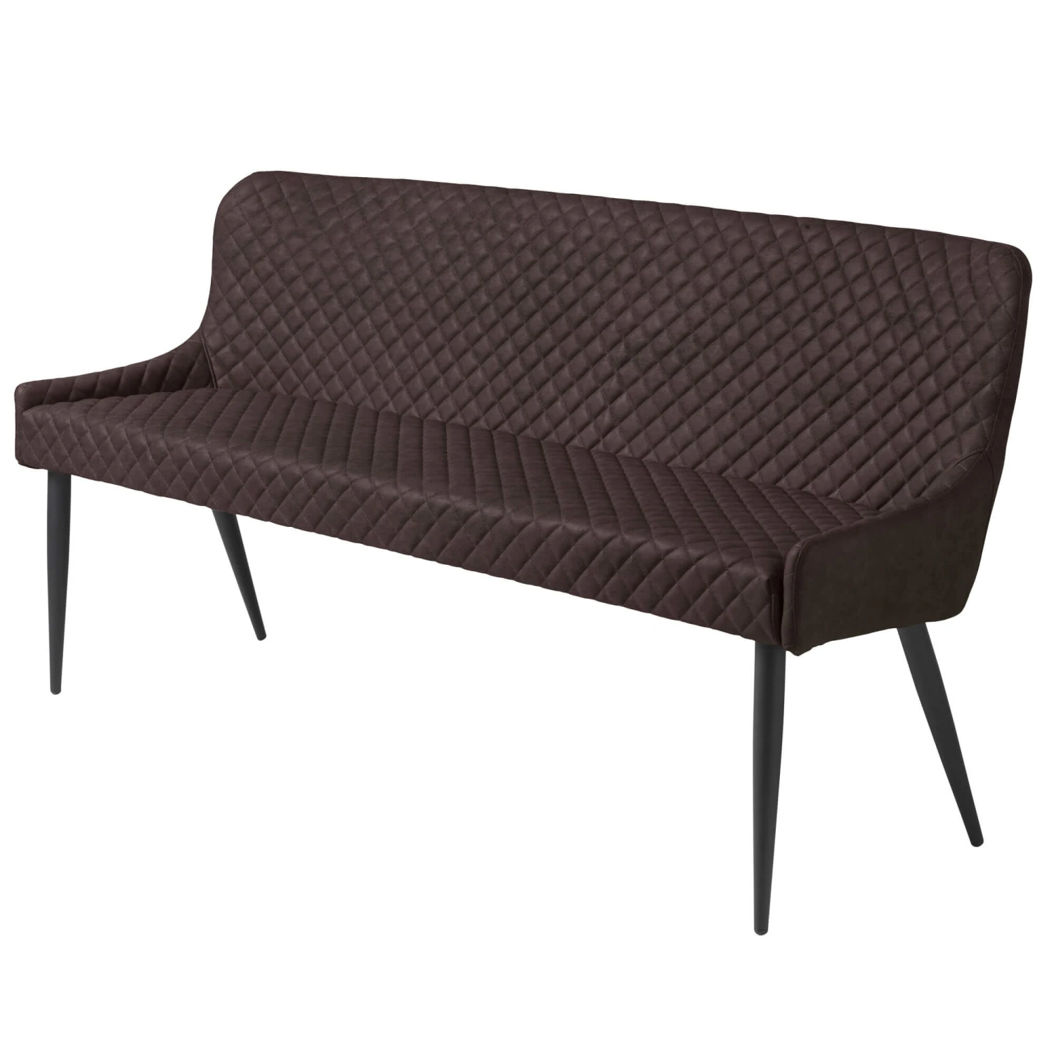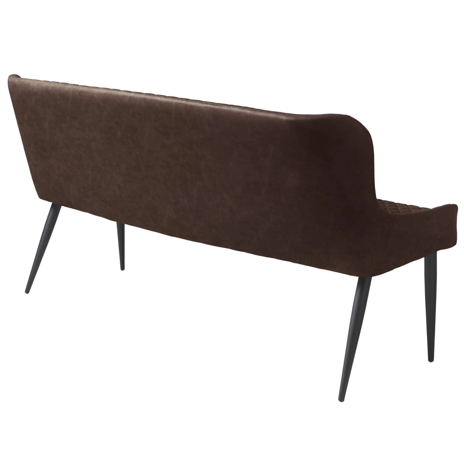 The beautifully proportioned Toby brown Sofa Bench creates a more relaxed dining atmosphere, whilst perfectly complimenting a range of dining tables and Toby dining chairs. The bench redefines modern chic with its scoop shaped back and cross stitch seats and backrests in a luxurious yet hard-wearing, brown faux leather fabric. The bench is supported by four long legs in metal with a black powder coated finish for an industrial flair and the brown fabric features varying tones to create a visible texture for an authentic leather look.