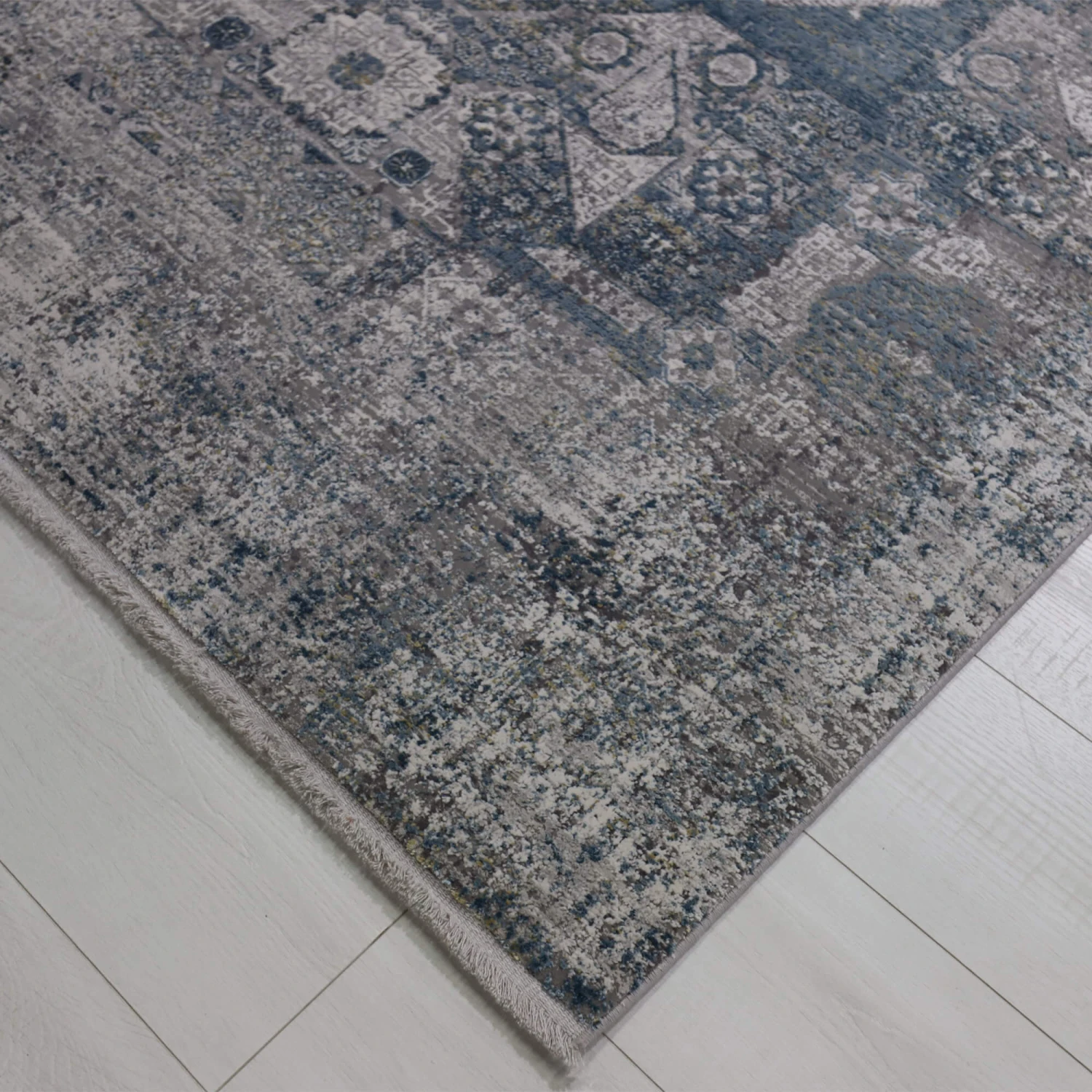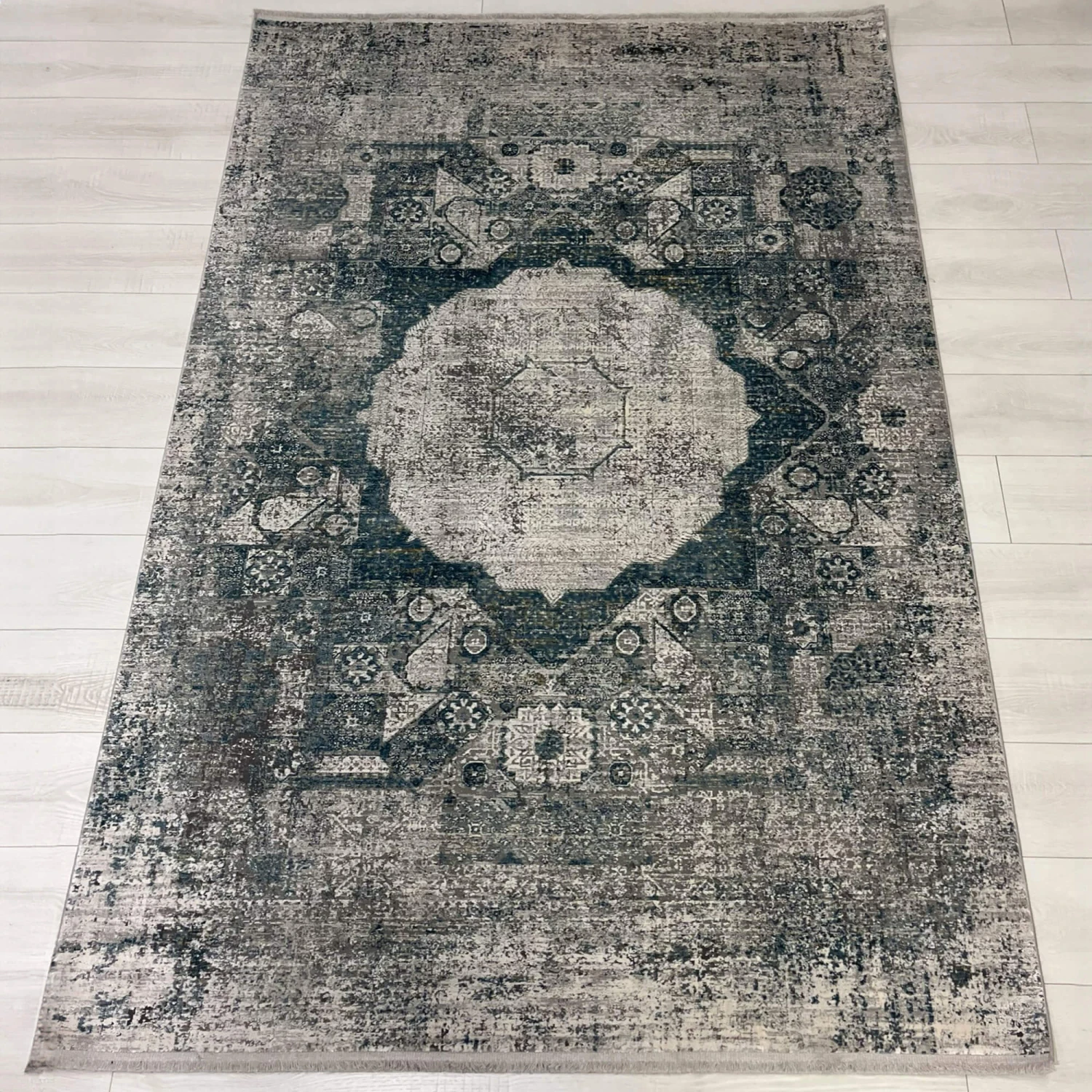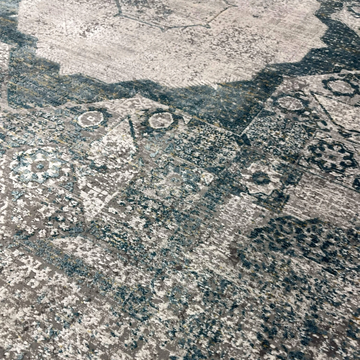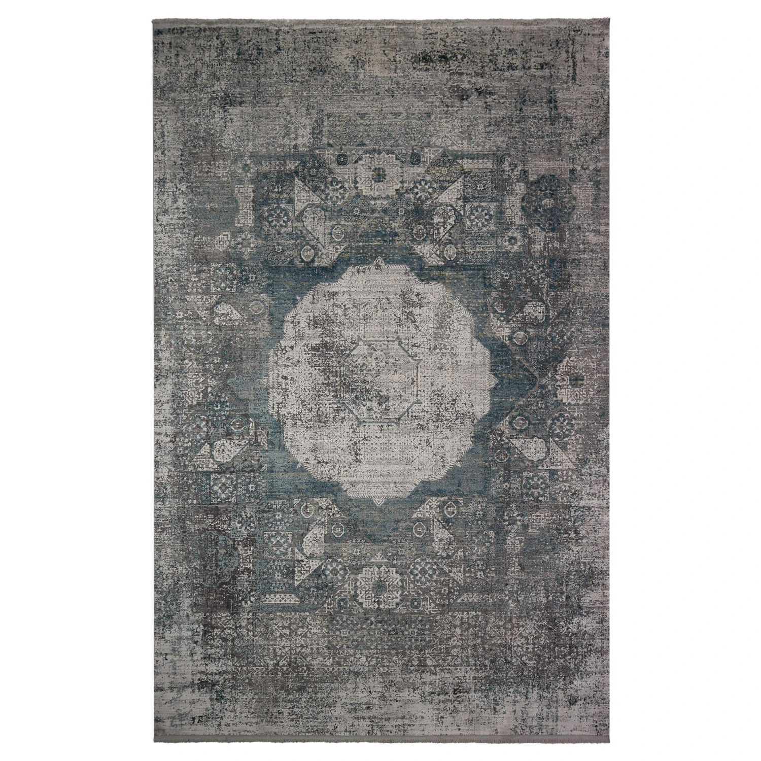 This captivating rug features a central floral medallion that seamlessly blends shades of blue that create visual depth and interest amongst the rug. This large rug’s distressed vintage look reflects expert artistry, with its ageless design and gives your room the feeling quiet sophistication.