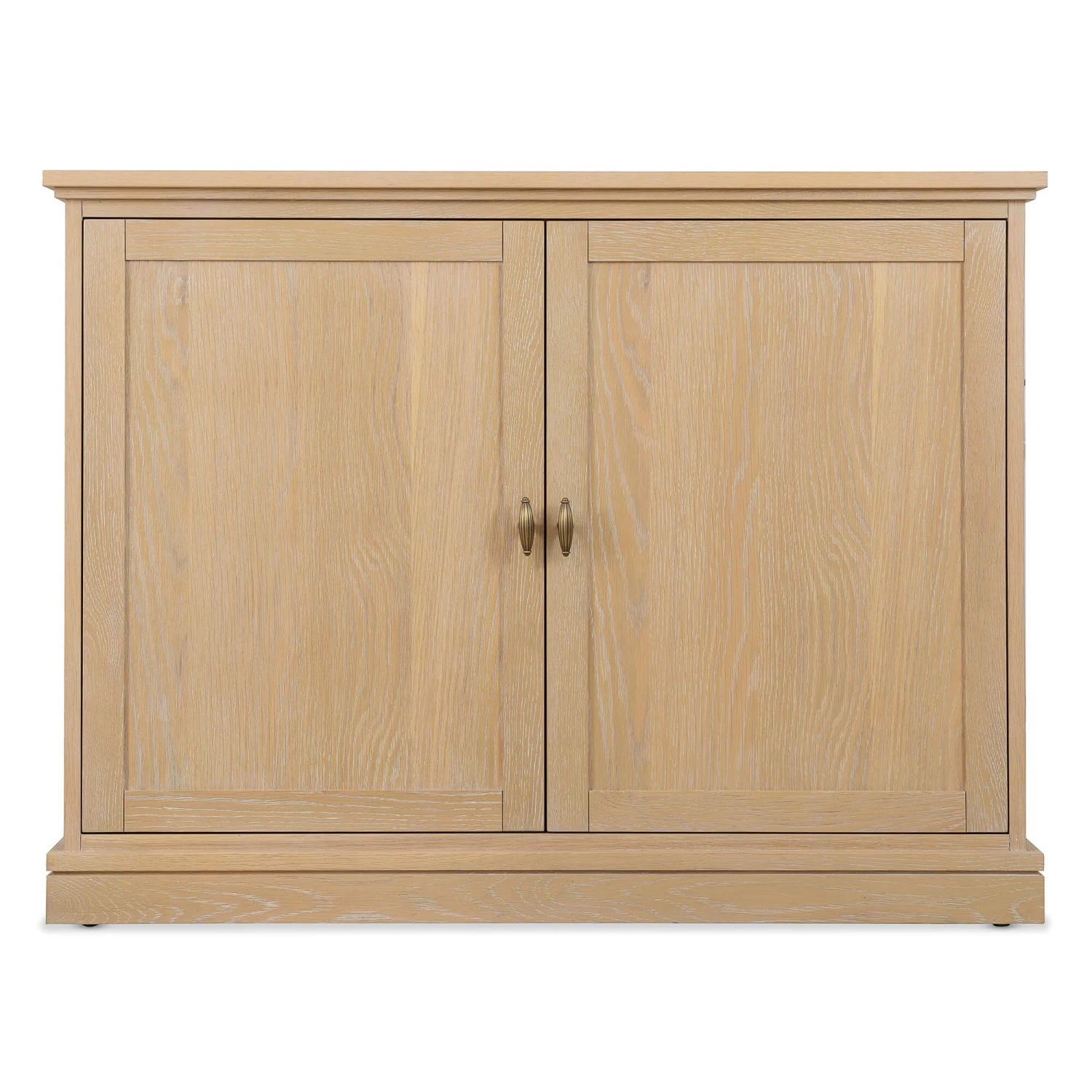 A truly enchanting piece designed to elevate the aesthetic of any farmhouse-style kitchen or dining room. This striking sideboard is meticulously crafted from beautiful light oak wood, showcasing a natural grain that adds warmth and character to your interior. Its enduring traditional style is defined by two elegantly inset panelled doors, which open to reveal ample storage space. These doors are adorned with charming antique-style brass capsule pulls, featuring ornate detailing that adds a touch of vintage sophistication and enhances its classic appeal.