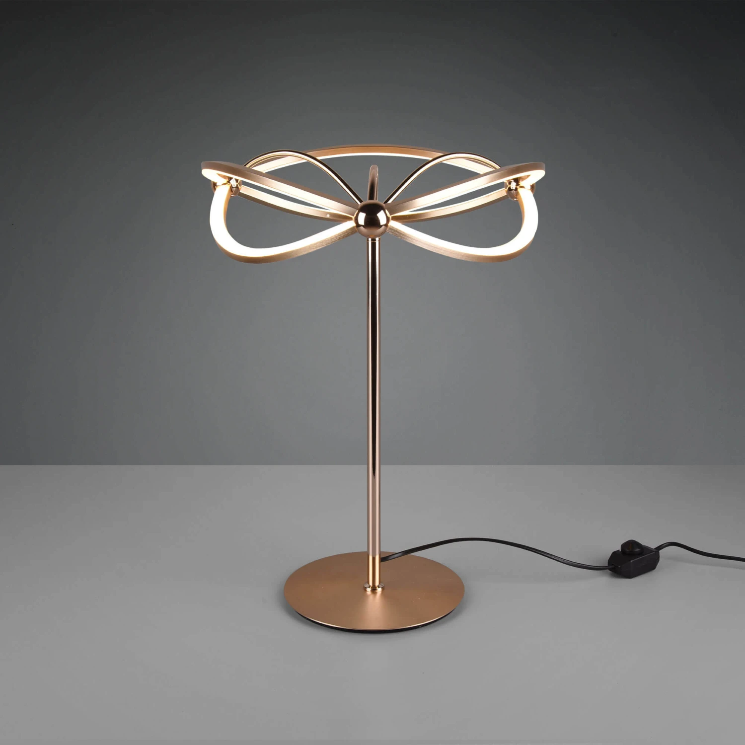 The Charm Gold Table Lamp boasts an elegant and sophisticated design. Illuminated by an integrated LED bulb, this lamp features a brass matt metal base and smooth intertwining curved lines, providing a warm and inviting glow. Operated by a cable switch, the light has an integrated rotating dimmer, allowing the brightness to be adjusted to your desired setting. Available in two colours; gold and nickel, this stunning lamp is perfect for serving as a decorative element or adding a touch of luxury to any room.