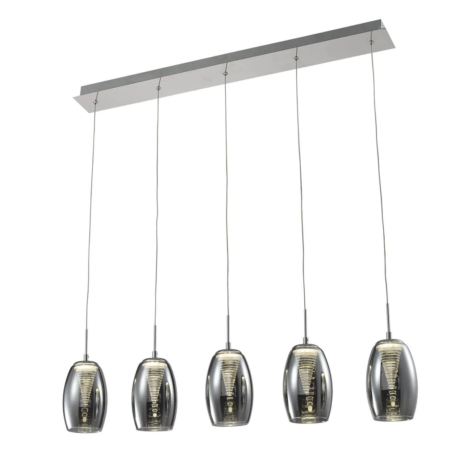 Add a touch of luxury to your home with this Vortex Smoked Glass 5 Light Pendant Bar, featuring 5 smoked glass domes hanging from a polished chrome bar. Beautiful and ornate, this pendant light will give your home decoration a sophisticated feel, finished with glass pendants with LED light source that will quickly command attention and become a centre piece in your home, whilst illuminating it beautifully!