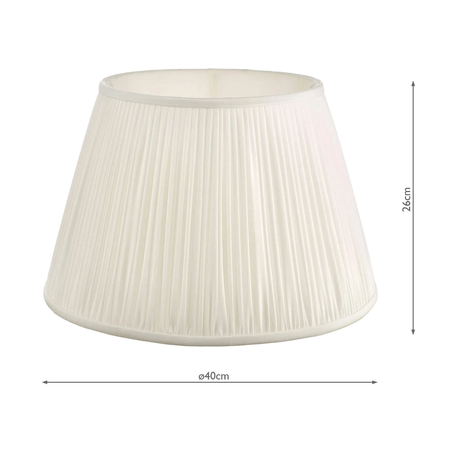 Add a classic yet sophisticated touch to your home with this Yana Faux Silk Tapered Ivory 40cm Shade. Made from faux silk, this elegant lamp shade features a tapered pleated design shade with a matching lining in a ivory finish, creating a warm and inviting ambience. Available in various sizes, this timeless lamp shade is perfect for adding soft charm to any contemporary or traditional interior.
