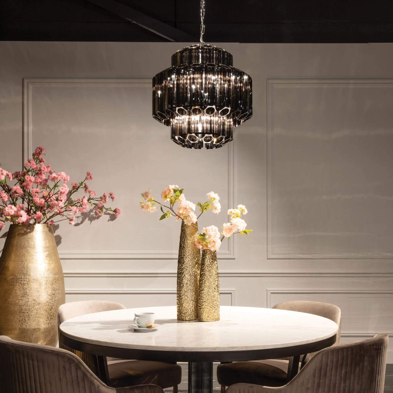 This ornate light is made of glass, with a modern, elegant design. Perfect for in the hall or above the dining table, the Yula light exudes a sophisticated style for a contemporary, extravagant look