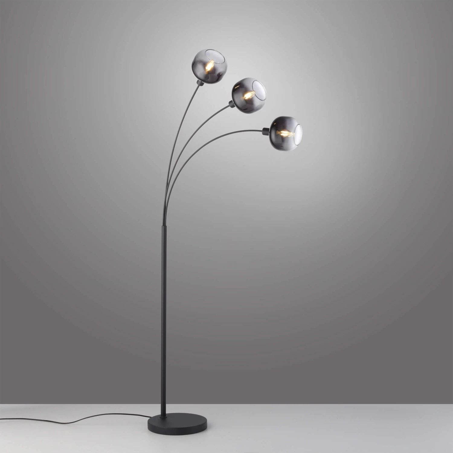Add a timeless and elegant touch to your living space with this Zelda Smoked 3 Light LED Glass Floor Lamp. Illuminable by three energy-efficient E14 LED bulbs, this sophisticated floor lamp features three round pivotable smoked glass shades with a black finish metal base, creating a harmonious lighting atmosphere. Operated by a foot switch, it has three swivelling lamp heads, allowing you to alight the light sources as you desire. Modern in design, this eye-catching floor lamp is perfect for setting stylish accents and skilfully highlighting any interior.